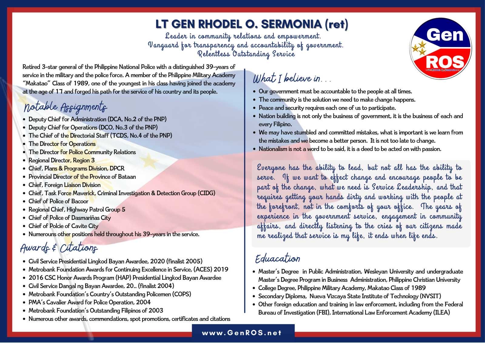 Throughout his law enforcement career, General Sermonia has held various high-ranking positions, where he has proven himself to be a capable and effective leader. He has led successful operations, implemented innovative strategies, and fostered a culture of excellence within the ranks. Beyond his law enforcement duties, General Sermonia has also been actively involved in community outreach programs, demonstrating his commitment to social welfare and the well-being of his fellow Filipinos. His dedication to public service and his unwavering belief in the power of unity have earned him widespread respect and admiration.